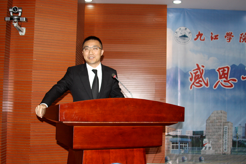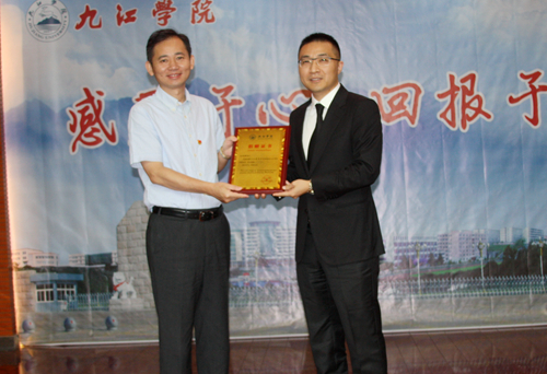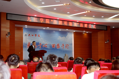金秋九月,丹桂飘香。在这秋高气爽、阳光灿烂的收获季节里, “浩鹏明德奖”捐赠仪式于9月29日下午在逸夫图书馆学术报告厅隆重举行。上海中云资产管理有限公司董事长毛浩鹏先生及其助手专程从上海前来参加捐赠仪式。校党委书记赵伟、校党委副书记魏立平、副校长夏启国以及党委宣传部全体人员,各二级学院党委书记,招就处、教务处、科研处、庐山文化研究中心负责人,学生工作部、团委、工会、校友办全体人员,文传学院、马克思主义学院、图书馆、教师代表和学生代表180余人出席了仪式。