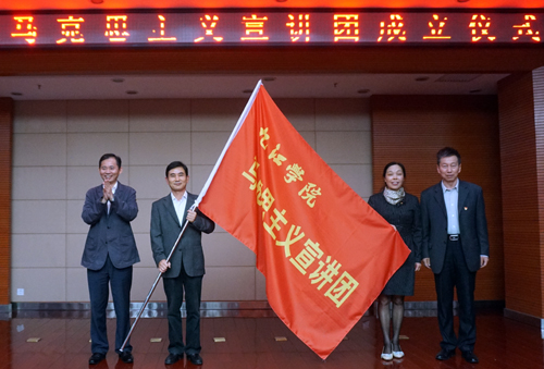 马克思主义宣讲团于10月13日正式成立。当天下午,我校在逸夫图书馆举行了成立仪式。校党委书记赵伟、校长刘晓东、党委副书记魏立平、副校长纪岗昌、副校长王万山、副校长杨耀防出席成立仪式。成立仪式由副校长陈春生主持。