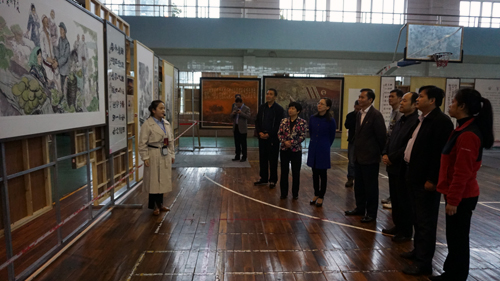 展出期间,九江市市委副书记熊永强、副市长李军、市政协副主席严平, 党委书记赵伟、校长刘晓东、党委副书记魏立平、副校长纪岗昌、副校长杨耀防,以及九江市有关单位负责人、众多文艺界人士以及我校师生等,来到现场,观看了巡展。