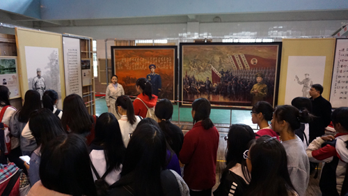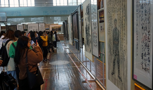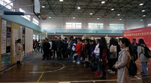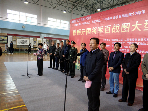 为迎接党的十九大胜利召开,隆重纪念八一南昌起义、秋收起义和井冈山革命根据地创建90周年,10月16日至18日,“赣籍开国将军百战图” 大型创作展览九江站的巡展,在我校北区田径馆举办。