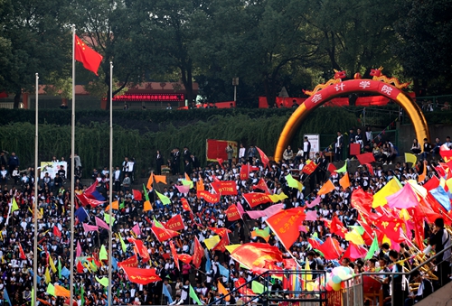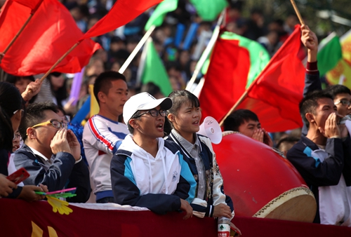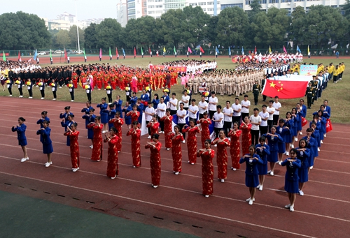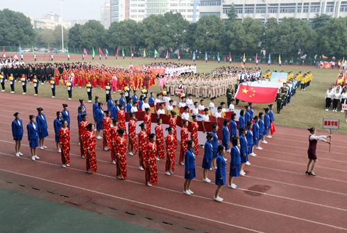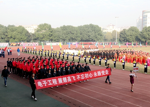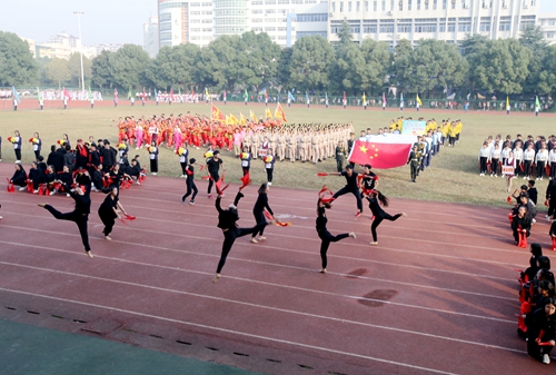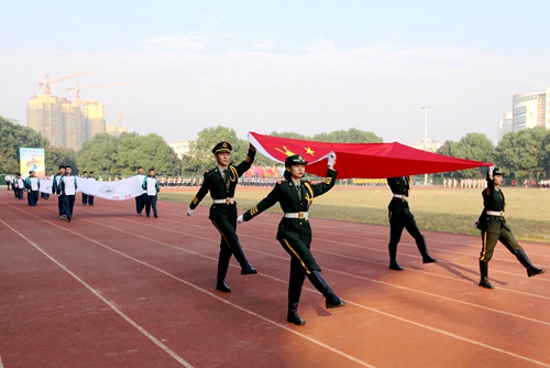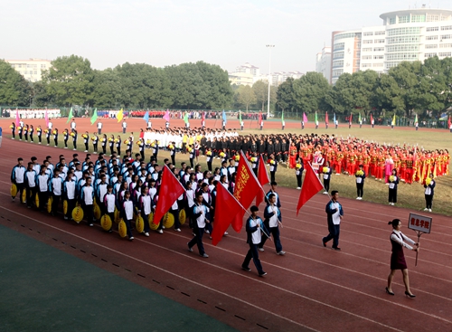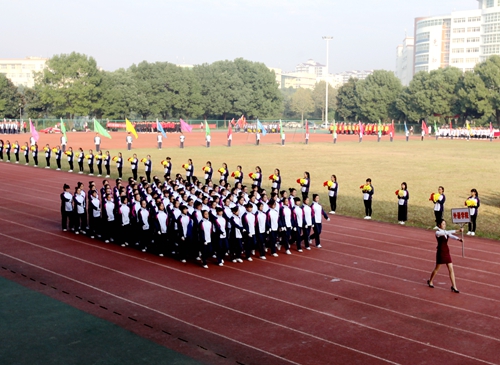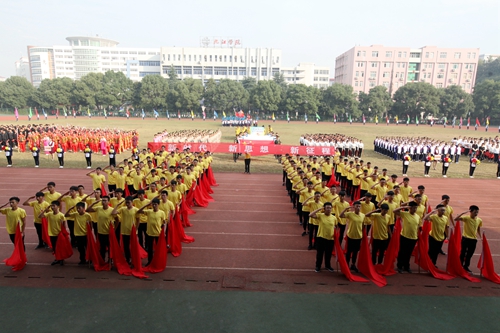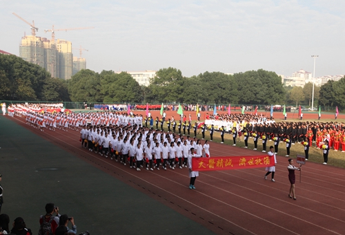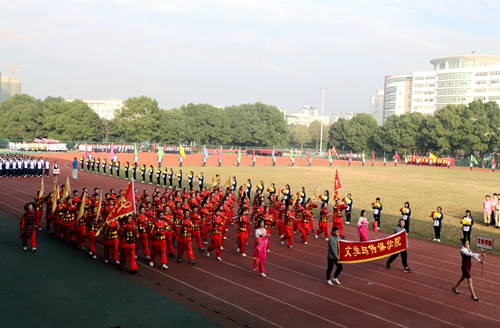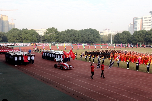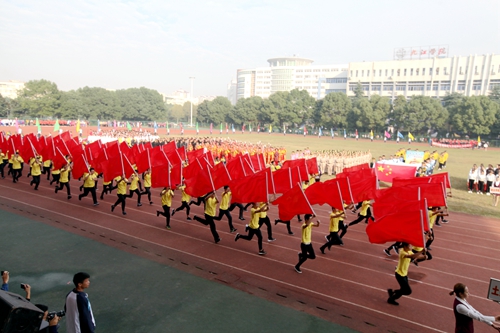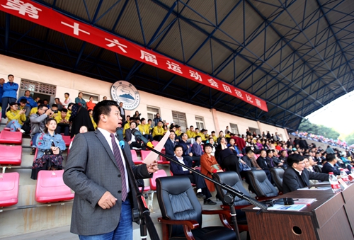 在热烈的掌声中,校党委书记赵伟宣布: 第十六届运动会开幕!