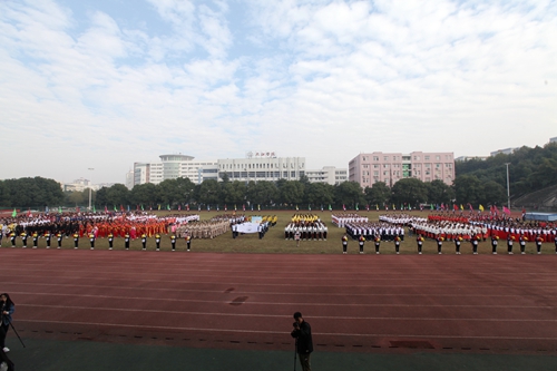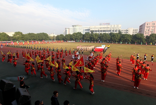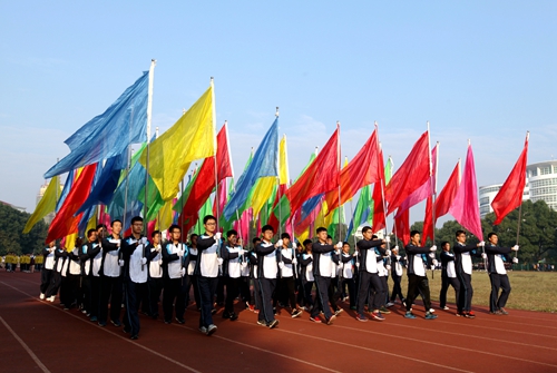校运动会组委会主任、校长刘晓东致开幕词。他首先向长期耕耘在体育教育园地的老师们和全体工作人员表示敬意和感谢。他指出,本届运动会的举行,既是对我校体育教育工作,体育运动水平的一次检阅,也是对各参赛运动员身体与心理素质、竞技才能的考验;更是各参赛队集体意识、公平竞争意识、团队精神、拼搏精神的展现!比赛不是最终的目的,是要通过竞技运动,进一步推动我校各项体育工作向前发展。形成良好的体育锻炼氛围,使青年学生树立终身学习和锻炼的意识,切实做到德、智、体、美、劳全面发展,健康成长。