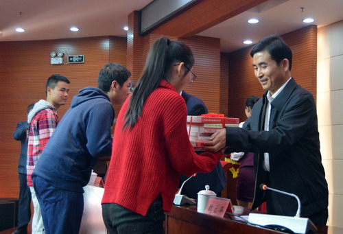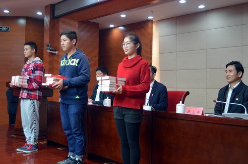 在热烈的掌声中,赵伟宣布 读书月正式开幕,并和与会领导一起为联系班级赠送了书籍。