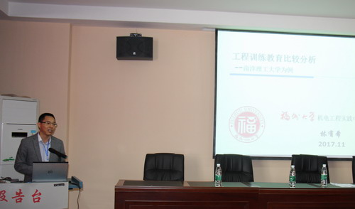 福建省高校工程训练教学研究会理事长、福州大学陈有希做了“中外工程训练教学分析比较---以南洋理工大学为例”、南昌航空大学工程训练中心书记朱民做了“新工科要求下的工程训练中心建设与思考”的专题报告。