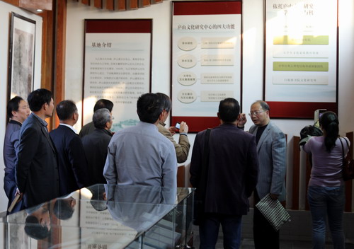 座谈会后,庐山文化研究中心和后勤管理处负责人陪同客人到两南山、学生三食堂和教工食堂进行了实地考察并作了简要介绍。