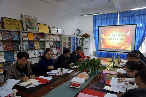 魏副书记指出,十九大报告博大精深,内容丰富。为把宣讲十九大精神推向深入,提出了五点指导意见:一是学通。要在学深、悟透上下功夫,认真学习领悟十九大精神实质,全面准确地宣传党的十九大精神。二是讲好。要认真研究,把握节奏。既要系统讲、全面讲,又要深入讲、专题讲,把宣讲工作不断引向深入。三是研透。要准确把握十九大报告的精神内核,找准切入点,研究出成果。四是快进。要快速地把十九大精神融入学术研究、学科建设、课程内容、培训教材和学习读本,落实好“五进”要求,贯彻教育教学的各个环节。五是造势。要精心策划,营造学习宣传贯彻十九大精神的浓厚氛围,提升宣传的质量与效果,抓好落实各项工作。要坚持联系理论创新、联系受众的关切、联系思想困惑和联系当下热点,坚持问题导向,释疑解惑。进一步增强宣教的吸引力和感染力。
