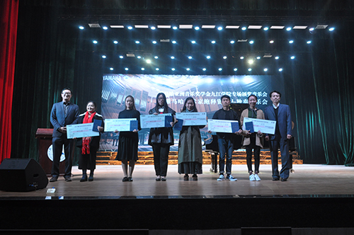 接着,艺术学院副院长欧阳时来副教授宣读获奖选手名单,之后,陈春生副校长、夏启国副校长、黑泽国久课长、高阳副科长、易昊主任及艺术学院党政领导分别为获奖师生颁发证书和奖金。