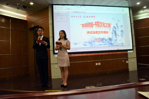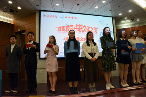 下午,“发现校园·书院文化之美”美文吟诵会在郑州大学图书馆第二学术报告厅举行,两校师生代表共100余人参加了此次吟诵会。两校学子借助文字和声音,表达了他们对校园和书院文化的独特体会。