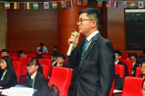 魏立平为大会主席颁发“模联法锤”并致开幕辞。他指出,在全球化趋势不断增强的今天,中国更加积极地参与全球治理体系改革和建设,不断贡献中国智慧和力量。教育应该适应这一形势,增强学生的国际意识和国际视野,培养更多走向世界的开放型、复合型人才。学校开展模拟联合国活动就是这一教育理念的具体化表现,也是我校第二课堂活动的创新与拓展。通过此活动,让青年学生有机会去深刻体会联合国的和平的理念和理想主义精神,为推动人类命运共同体建设,为创造人类的美好未来而不懈努力。他希望各位代表能将模联“心怀天下”的责任意识延续到生活中,也期待代表们在会场上提出新颖可行的解决方案,为世界和平贡献自己的力量。