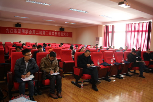 12月8日,九江市发明学会在 机材学院206会议室召开第二届第二次会员代表大会。九江市科学技术局调研员、市知识产权局局长胡雄彪,市知识产权局副局长刘晓英,九江市委组织部人才科科长何程莅会指导,市科协、市民政局表示祝贺。学会第二届常务副理事长、 科研处副处长宋士华主持大会。机材学院院长张德勤、九江职业技术学院机械学院院长汪程、多家高新技术企业负责人来自发明学会单位会员代表和个人会员共计59人参加了会议。