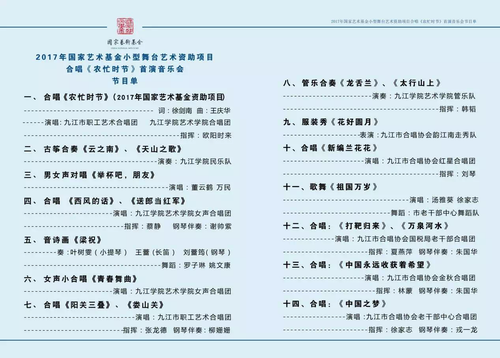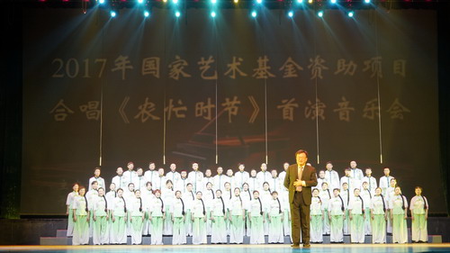 我校2017年国家艺术基金小型舞台艺术资助项目合唱《农忙时节》12月8日在九江市文化艺术中心剧院首演。