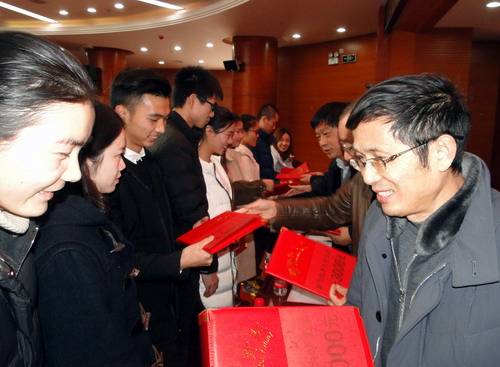 在热烈的掌声中,获得“新华优秀教师奖”、“新华优秀班主任奖”、“新华优秀辅导员奖”、“新华优秀大学生奖”的师生依次走上讲台,夏启国副校长和相关部门领导分别为他们颁奖。