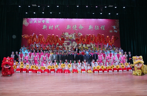 2018年“新时代、新使命、新征程”元旦晚会在主校区大礼堂隆重举行。学校党政班子成员赵伟、刘晓东、魏立平、王万山、陈春生、杨耀防、夏启国、查振华,省人大环资委副主任甘筱青,以及学校各职能部门、二级学院党政负责人与千余名师生代表欢聚一堂,共同翻开2018崭新的篇章!