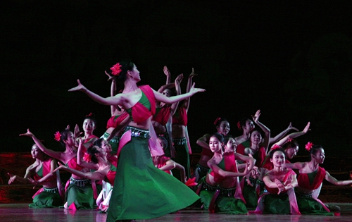 由大学生艺术团朱志琦、刘佳等表演的傣族舞《雨林深处》,用优美独特的舞蹈语言向观众讲述了云南丰富多彩的少数民族文化。演出中他们用个性、生动的肢体语言展示了真实、美好的生活状态。欢快有节奏的的背景音乐,优美律动的舞姿,博得了观众阵阵喝彩。