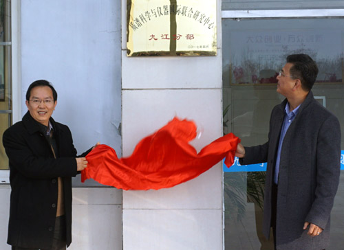 1月2日上午九点,江西省质谱科学与仪器国际联合研究中心九江分部揭牌仪式在我校大学科技园举行。