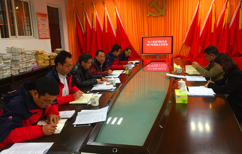 1月3日上午,电子商务学院在竞秀楼召开2017年度处级领导班子述职测评会和党委民主生活会,夏启国副校长到会讲话。组织人事部副处组织员夏英、劳资科副科长朱俊松,电子商务学院全体教职员工参加述职测评会,夏英主持述职测评会。