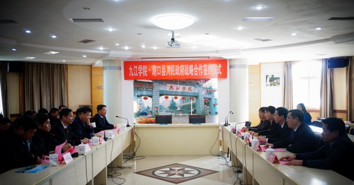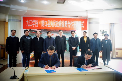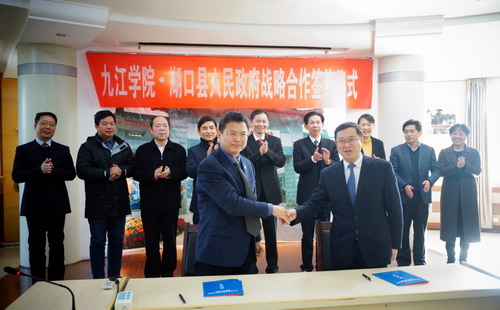 与湖口县人民政府战略合作签约仪式在我校行政楼一号会议室举行。校党委书记赵伟,校长刘晓东,校党委副书记魏立平,副校长纪岗昌、陈春生、九江市政协副主席严平;中共湖口县委书记李小平,湖口县县长鲍成庚,湖口县委常委、组织部部长梅媚,县委常委、县高新技术产业园区党委书记柯景坤,县政府副县长张水兰以及我校相关部门负责人出席了签约仪式。副校长陈春生主持仪式。