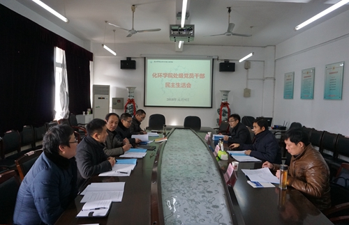 1月9日上午,化环学院召开党委民主生活会,校党委副书记魏立平到会讲话。组织人事部副部长金葆金、组织人事部综合科副科长张超及化环学院党政班子成员参加了会议。刘新强主持会议。