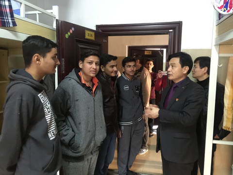 为了让我校留学生度过一个安全、祥和的寒假,1月14日下午,杨耀防副校长在保卫处处长张晓明、副处长吴新刚,国际交流学院副院长何广等相关人员的陪同下,巡查了留学生宿舍和正在装修改造的24栋留学生新宿舍楼。