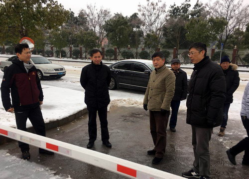 1月27日上午,校党委书记赵伟、校长刘晓东、副校长夏启国深入学校一线检查督导低温雨雪冰冻天气防范应对工作,后勤管理处、基建处、保卫处等部门负责同志随同参加检查。