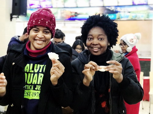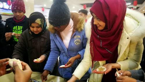 农历新年是中华民族悠久的历史传统,年夜饭又是过年的最重要习俗。年夜饭也称团圆饭,代表着家庭团圆和美。为了使留学生能在异国他乡同样感受到家庭的温暖和学校的关爱,学校后勤管理处联合国际交流学院为160余名留学生精心准备了此次年夜饭,年夜饭上菜品丰富,除了有中国过年传统时令食物春卷、饺子、黄金糕,还有十分适合留学生口味的拌沙拉、咖喱饭和罗宋汤。同时考虑到让留学生亲身参与体会中华民族传统习俗,还特意安排了现场包饺子、写春联,饭后贴对联等喜闻乐见的活动,整个活动在欢乐、祥和的氛围中进行。