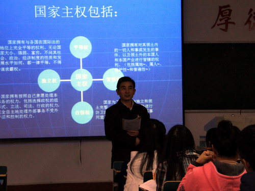 本节课为该班本门课程的第一节课,邱洁瑞老师通过点名逐一认识了本班同学,讲述了开设本门课程的必要性和基本要求,详细介绍了课程结构、学习方法,并生动地讲述了第一章国际关系主体等内容。课堂上,魏立平副书记与同学们一同认真听讲,并细心观察学生的表现,不时地做着笔记。