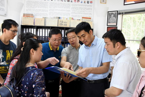 在参观基地期间,迟云平代表基地把收藏的一份1957年2月九江民盟珍贵史料原件馈赠给民盟九江市委员会。