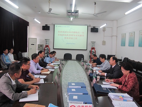 根据学校安排,5月10日下午,学校本科教学审核评估第四督查小组马军、黄冬久、邓悝在副校长纪岗昌为组长的带领下,一行4人来到化环学院开展本科教学审核评估督查工作。化环学院党政领导、科室负责人、教研室主任及相关老师参加了本次评估督查汇报会。