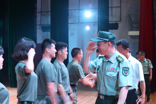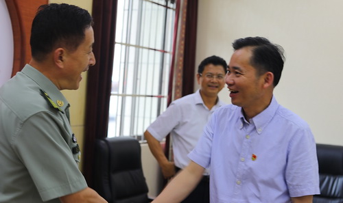 宣讲活动开始前,校党委书记赵伟、校长刘晓东会见了九江军分区司令员宋朝阳大校和其它高校分管征兵工作的校领导。