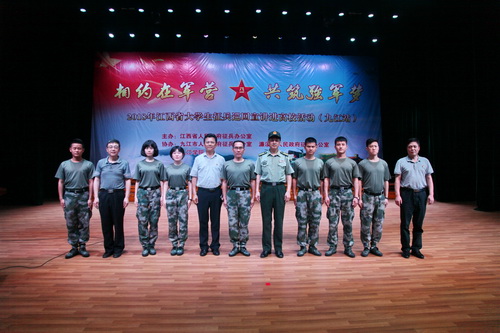 “入伍铸我中国梦,一身军装戍八方;手不释卷好儿郎,投笔从戎亦自强。”5月30日下午,以“相约在军营,共筑强军梦!”为主题的江西省大学生征兵巡回宣讲进高校活动(九江站)在我校主校区大礼堂举行。