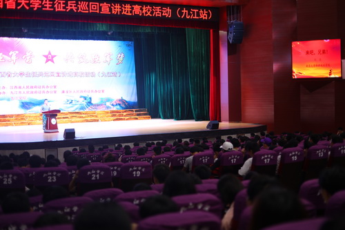 本次巡回宣讲由江西省人民政府征兵办公室主办,九江市人民政府征兵办公室、濂溪区人民政府征兵办公室和 承办。九江军分区司令员宋朝阳大校、 校长刘晓东、九江高校分管征兵工作的校领导出席活动,九江高校教师及2018届应届毕业生代表800余人参加活动。