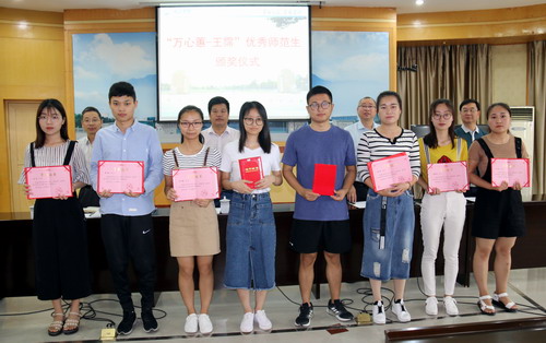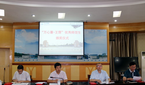 5月30日上午,学校在四号会议室举行“万心蕙-王霈”优秀师范生颁奖会,副校长陈春生出席并为获奖学生颁奖。各相关二级学院分管领导、获奖学生、师范生代表参加了颁奖会。会议由教务处处长陈小林主持。