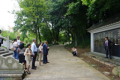 仪式结束后,杨耀防副校长陪同代表团成员参观了两南山和青衿园。在两南山,杨副校长为来宾介绍了陶渊明和陈寅恪的生平典故,以及他们对中华文化的贡献;在青衿园,杨副校长介绍了白鹿洞书院学规,讲解详实丰富,语言深入浅出,诙谐幽默,激发了萨凡纳市教育工作者对中华文化的兴趣和了解。