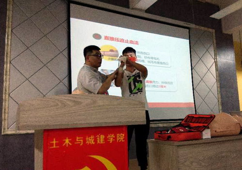 为普及卫生救护知识,进一步提高我校助理辅导员应急救护意识和能力,最大限度地保护学生的生命与健康,学校第二期急救员培训班于6月6日开班了。校医院邀请省、市急救培训专家钱逢鑫、高蕾等老师来校在望庐楼一楼会议室利用一个下午和晚上的时间开展急救知识与技能培训。副校长夏启国及学生处、校医院相关负责人全程参加了培训。