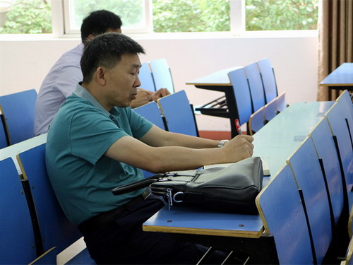 6月12日上午8:00-8:45,本科教学工作审核评估专家组成员、信阳师范学院副校长王文臣教授来到竞知楼408教室,听取了旅游学院蔡潇老师讲授的《土地使用规划》课程。