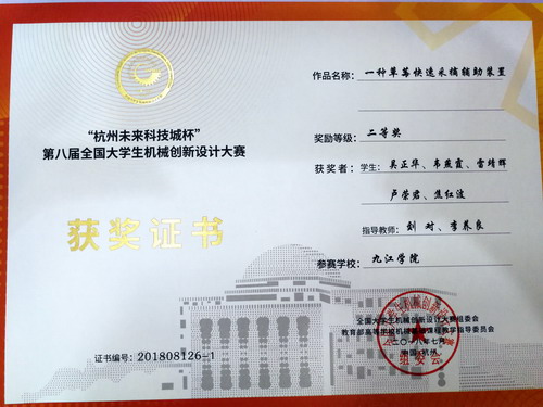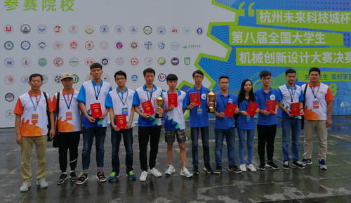7月23日至24日,“杭州未来科技城杯”第八届全国大学生机械创新设计大赛决赛在浙江工业大学隆重举行。来自全国113所高校的1200余名参赛选手参加了比赛。我校机械与材料工程学院 “一种草莓快速采摘辅助装置”(参赛学生:吴正华、韦燕霞、雷靖辉、卢荣君,指导教师:刘对、李养良)和“水果采摘辅助装置”(参赛学生:刘志东、易鹏、曾令平、毛佳俊、卢佳宇,指导教师:彭晓玲、胡云堂)分别荣获大赛二等奖。