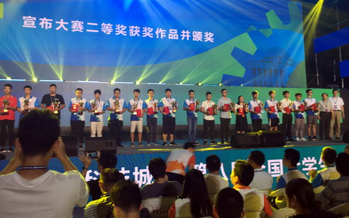 7月24日下午,大赛闭幕式暨颁奖典礼在浙江工业大学屏峰校区体育馆举行。浙江工业大学党委书记蔡袁强、副校长华尔天、余杭区委常委、组织部部长朱红丹,大赛组委会成员赵韩、孔建益、王晶等,中国创新设计产业战略联盟秘书长、浙江大学教授孙守迁出席。赵韩代表决赛评委会作点评发言。闭幕式上举行了颁奖仪式。经评审委员会全体会议复审,并汇总第八届全国大学生机械创新设计大赛决赛第一阶段的结果,大赛共评出一等奖158项、二等奖268项。