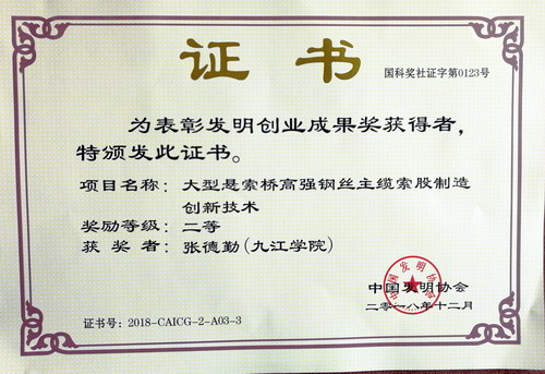 论坛以“新中国成立70周年 科技发展与发明创新”为主题,聚焦国家创新政策、奖励优秀发明家和特别贡献者,挖掘更多发明人才,分享发明理念和创新智慧,激励公众为建设创新型国家和世界科技强国做出新贡献。颁奖典礼上,86个项目获得“发明创业成果奖”。其中“复杂应用环境下短距无线通信系统关键技术、成套装备及应用”获得特等奖;“单晶叶片熔模铸造计算机模拟技术及应用”等43项发明成果获得一等奖;我校与奥盛(九江)新材料有限公司合作的“大型悬索桥高强钢丝主缆索股制造创新技术”等42项发明成果获得二等奖;