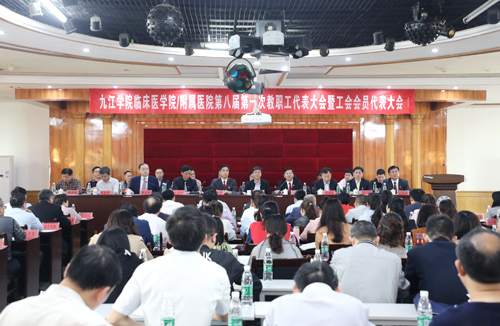 市总工会副主席徐胜发表讲话,他代表九江市总工会向参会代表及辛勤耕耘、默默奉献在各个岗位上的全体职工致以亲切的慰问和崇高的敬意,对附院工会工作取得的突出成绩给予了高度评价,并对该院工会下一步工作提出了具体要求。徐副主席表示,希望院工会坚定正确的政治方向,把握工会时代主题,坚持服务职工,夯实工会基层基础;希望与会代表积极参与医院的院务公开、民主管理、积极反映广大职工的心声和诉求,凝心聚力谋发展,化解矛盾促和谐,切实起到党政领导与职工群众的桥梁纽带作用,当好附属医院改革发展的排头兵,以优异成绩迎接新中国成立70周年。