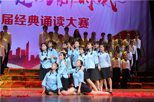 晋级此次诵读大赛共有10支学院代表队。大赛现场气氛热烈,参赛选手们以高涨的热情,饱含深情地诵读经典书目。