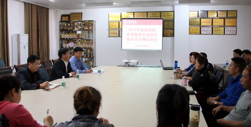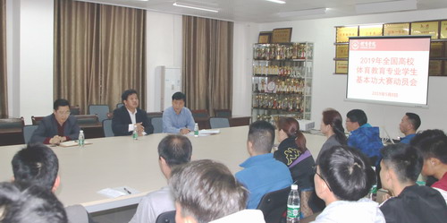 5月8日下午,陈春生副校长来到体育学院检查指导2019年全国高校体育教育专业学生基本功大赛准备、训练工作情况,并在八里湖校区综合楼620会议室作动员讲话。体育学院院长段宝斌、体育学院书记付和忠、教务科长陈志军、季赛中心主任季刚、代表队全体指导老师和运动员加了此次会议,会议由院长段宝斌主持。