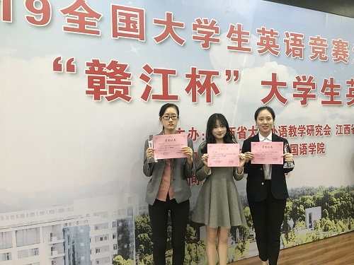 两天的比赛紧张激烈,我校共有3位选手获得晋级参加总决赛,其中1名来自外国语学院,2名来自文学与传媒学院。来自外语学院的英语专业本科2名同学突破重围,以笔试阶段前20名的好成绩进入第二天的口语竞赛阶段。3名同学最终均取得优异的成绩:外语A1616班邱淼洋获得全国大学生英语竞赛AB类特等奖,赣江杯口语竞赛AB类特等奖,及赣江杯大学生英语竞赛AB类特等奖。她的总分获得了江西省第一名,将在8月上旬代表江西赴长春参加大学生英语竞赛的全国总决赛。此外,在其他类别和“赣江杯”上也有所突破:外语A1616班韩健获得“赣江杯”口语竞赛AB类一等奖,赣江杯大学生英语竞赛AB类一等奖。文学与传媒学院的黄雯同学获得“赣江杯”大学生英语竞赛D类一等奖,“赣江杯”口语竞赛D类一等奖。