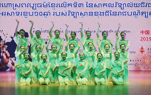 晚会上,来自柬埔寨的艺术家们和 的柬埔寨留学生,为大家展现精彩绝伦的古典高棉艺术。柬埔寨皇家科学院代表团带来了《孔雀舞》、《敲椰壳舞》、《美人鱼舞》、《耕祭舞》, 的柬埔寨留学生们表演了《淑女舞》、《笙舞》、《水布舞》,这些富有高棉特色的舞蹈,呈现了柬埔寨人民沟通交流、祭拜神灵、感恩自然、庆祝节日等场景。柬埔寨的艺术家演奏了四种柬埔寨传统乐器,或深沉,或细腻,或委婉的曲调,使观众感受到了浓郁的古典高棉文化气息。