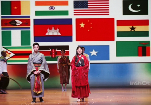 由 的中国学生和外国留学生们带来的各国服装秀展示了中国、柬埔寨、印度、尼日利亚、美国等13个国家的传统服饰,使现场观众了解到不同国家在服饰文化上的审美品味,带来了一场视觉的盛宴。