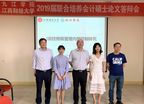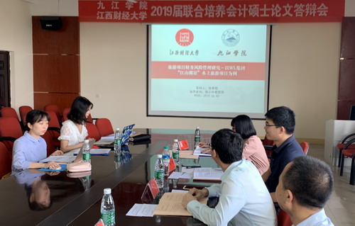 6月3日上午,由 与江西财经大学联合培养的首届会计硕士毕业论文答辩会在立信楼504圆满完成。此次答辩的答辩委员会由江西财经大学会计学院周冬华副院长、熊家财副教授、罗劲博副教授以及我校会计学院许松涛副院长、王秋红博士共同组成,由周冬华教授担任答辩主席。