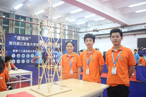5月31日至6月2日,第四届江西省大学生结构设计竞赛暨第十三届全国大学生结构设计竞赛江西分区赛在东华理工大学南昌校区举行,我校建工学院由副院长陈国锋带队,4位指导老师和6位参赛学生组成的参赛队伍。经过三天紧张的激烈角逐,我校力压其他23所兄弟院校,获得团体总分第一名,其中由肖波、陈佳佳、曾莉琳三位同学组成的 2队(指导教师为朱晓娥、戴木香),从众多参赛队伍中脱颖而出,以第二名的成绩荣获一等奖;由詹佳骏、李志波、吴梦春三位同学组成的 1队(指导教师为郭钊、张雷)荣获三等奖。