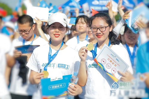 青衿园,每公里都设有打卡点和补给点,按赛事规定,凭集满五个打卡点的号票,领取《完赛证书》及金灿灿的奖牌。在健步走现场还设置有各类特色互动区,有网红泡泡区、魔鬼身材检测区、摸高互动区、代言人合影背景板、免费打印照片等互动环节,参与者在完成健步走全程路线之后,可以在互动区尽情玩耍,记录下这一特别的时刻,为欢乐赋能,让活力加倍。
