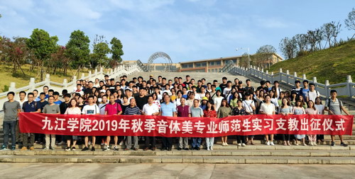 举行2019年秋季音体美专业师范生实习支教出征仪式。副校长陈春生,教务处、艺术学院、体育学院有关负责同志,专业指导(带队)教师和全体实习支教学生参加出征仪式。