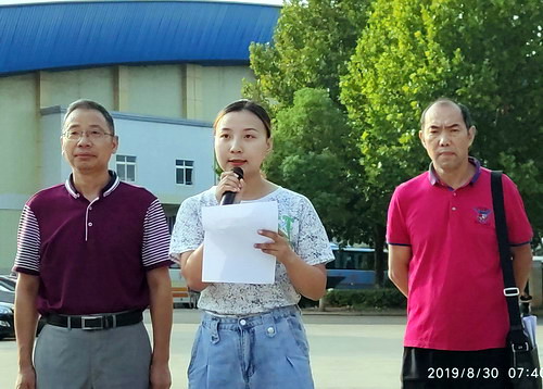 体育A1611班徐虹同学代表全体参加实习支教的同学们发言,表示一定不辜负学校厚望,谦虚谨慎,爱岗敬业,艰苦朴素,勤奋工作,努力完成支教任务。