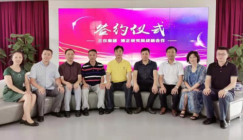 上午10:30签字仪式在博正研究院举行。博正研究院副院长熊俊芳主持签字仪式,博正研究院理事长、院长唐进波和三仪集团董事长、生命科学研究院院长江国托分别代表双方在合作协议书上签字,我校药学与生命科学学院院长、博正研究院副理事长张小谷及博正研究院副院长姜登钊参加了签字仪式。